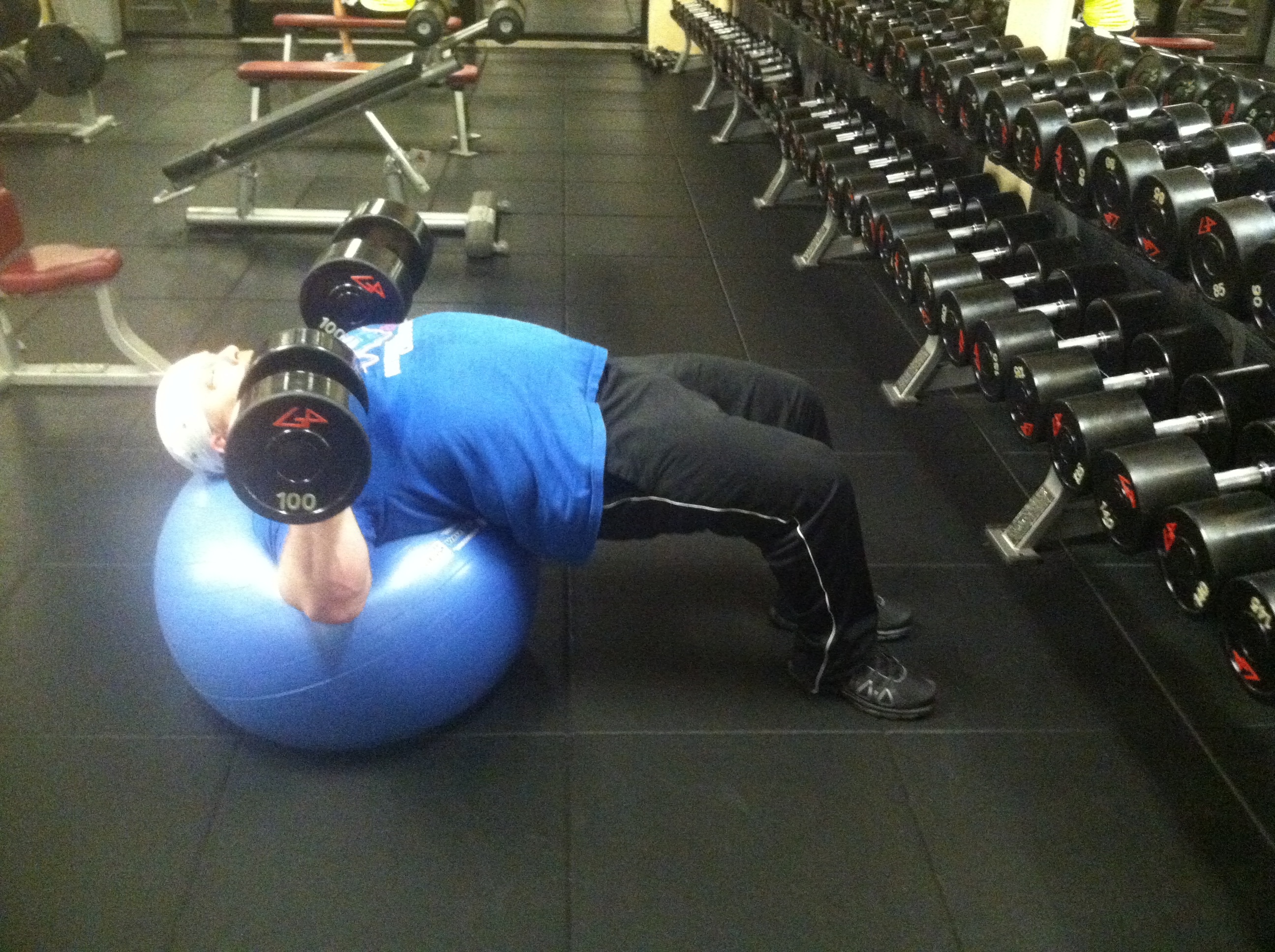 Posted: January 2, 2015 Filed under: Uncategorized Comments Off on Chest Training – Swiss Ball Dumbbell PressSwiss Ball Dumbbell Presses are a supplemental exercise that emphasizes pectoral strength. Because of the instability created by the dumbbells and the stability ball, your pecs and stabilizers are forced to work much harder than with a standard dumbbell press.